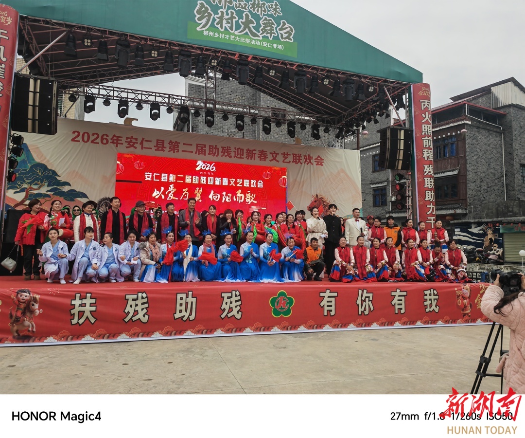 新湖南客户端1月27日讯(通讯员 周细花)新春将至,年味渐浓。为切实提升残疾人获得感、幸福感,营造残健相融、扶残助残的浓厚氛围,郴州市、安仁县残联联合举办“以爱为翼 向阳而歌”残疾人春节联欢会暨残疾人农产品展销、专场招聘会、赠春联系列活动,以“文化+就业+助农+惠民”多维服务,为残疾人送上暖心新春大礼。