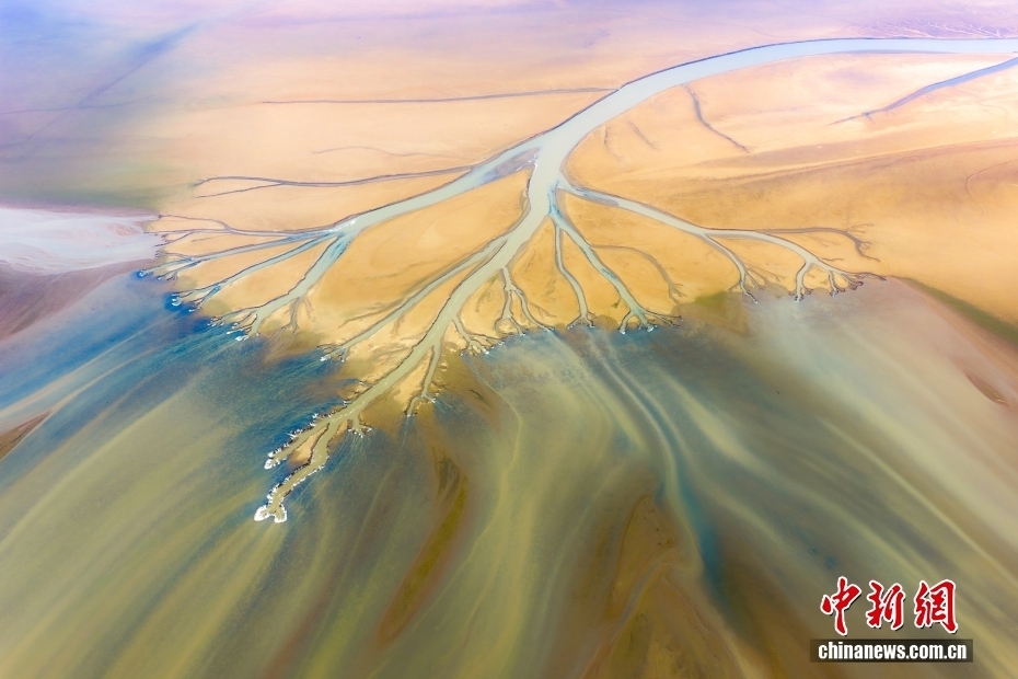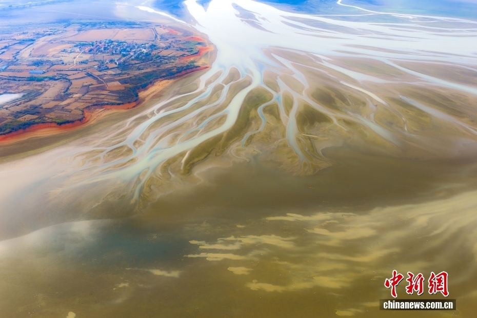 近日,江西南昌进贤县,鄱阳湖滩涂裸露,水道蜿蜒分叉,形成“大地之树”景观。
