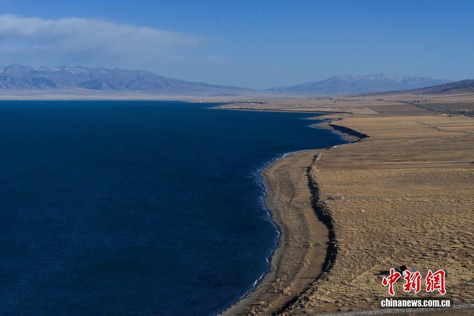 航拍冬日青海湖:湖水湛蓝 万物静谧