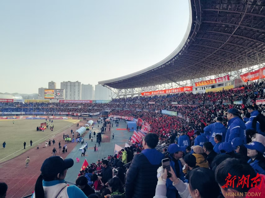“娄超”“湘超”全年30场主场赛事,直接带动重点商贸企业客流量超千万人次,拉动消费超6.5亿元,整体撬动消费规模超18.5亿元。赛事期间周边酒店入住率达90%,餐饮营业额增长55%,夜间消费活力持续释放。