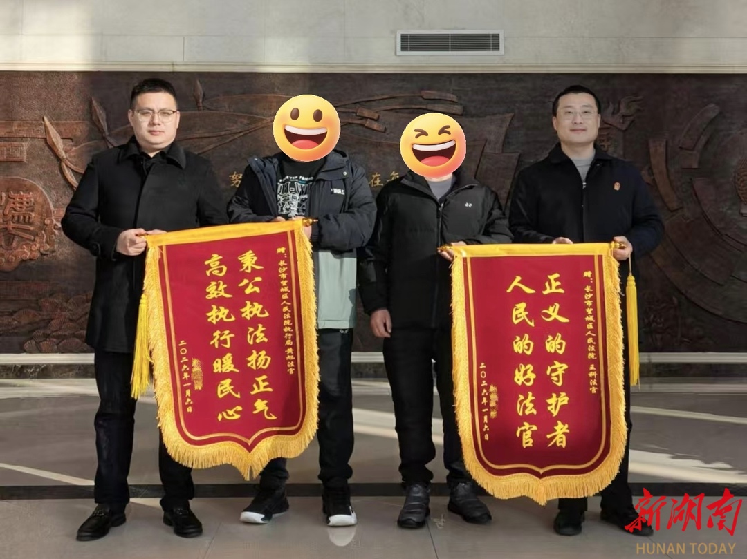 湖南法治报·新湖南客户端讯(通讯员 曾怡)近日,建筑工人廖某将两面锦旗赠予长沙市望城区人民法院,锦旗上镌刻着的“正义的守护者,人民的好法官”“秉公执法扬正气,高效执行暖民心”,既是对法官履职尽责的充分肯定,更是对法院以审执联动破解民生难题的由衷赞誉。