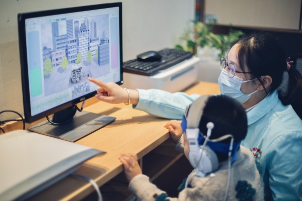 湘雅博爱康复医院为儿童开展认知训练。