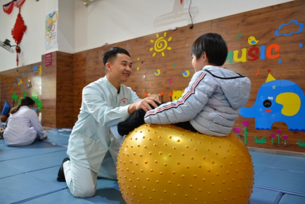 康复机构为儿童开展感统训练。