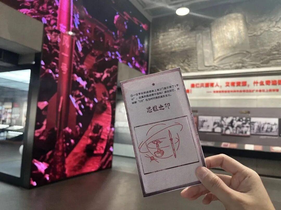 展厅走廊的“时空问答长廊”也热闹非凡,“当国家需要与个人志向相遇,你会如何选择?”一张张印着科学题与青春之问的卡片,让孩子们停下脚步认真思索,在闯关答题中解锁知识,更在叩问中明确青春方向。