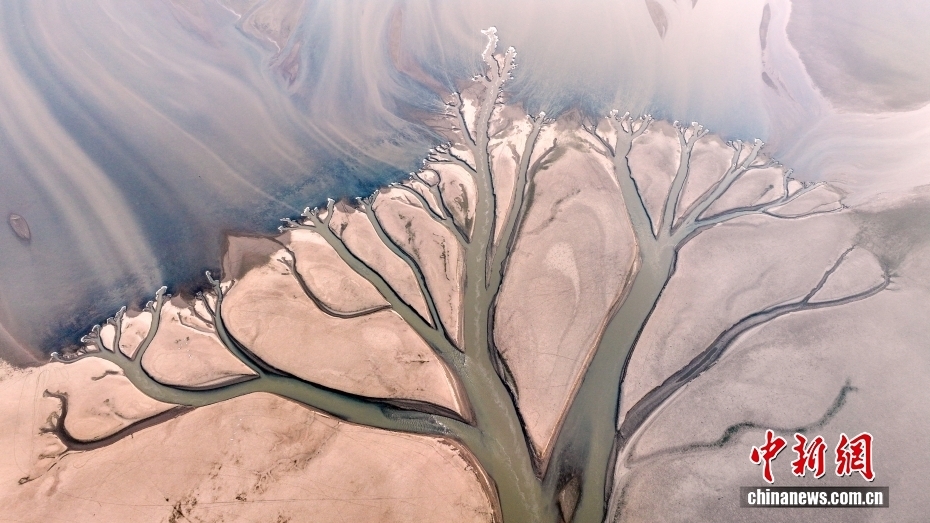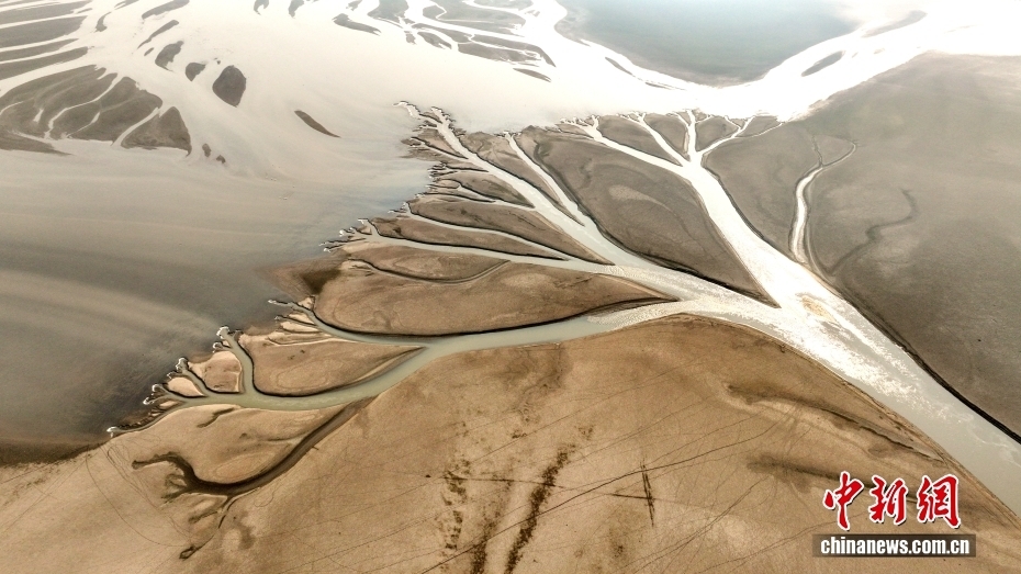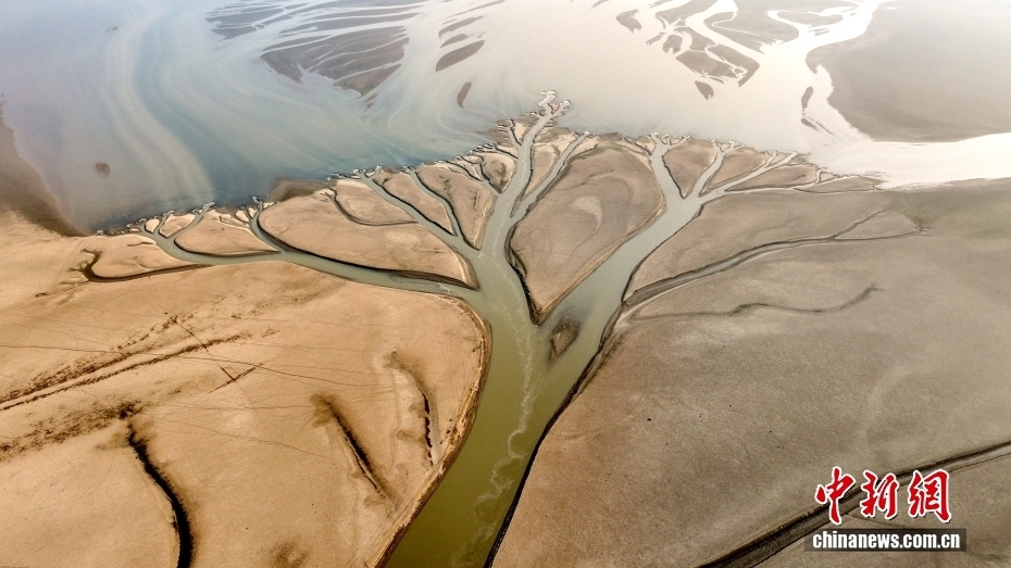 近日,航拍江西省南昌市进贤县金溪湖水域,河床上经过水流冲刷呈现出宛如大树的脉络,景色壮美。鲍赣生 摄