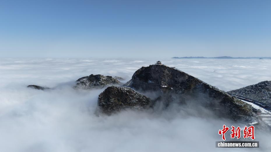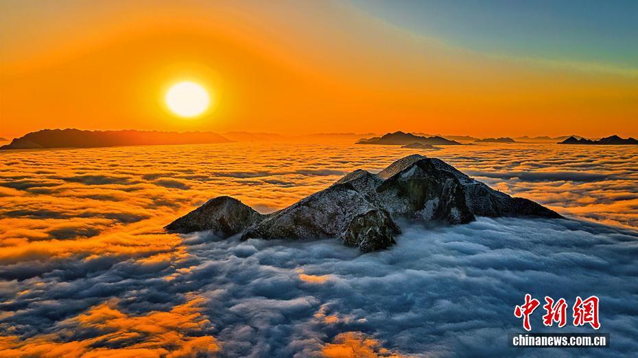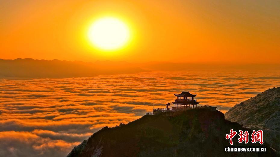 1月底,雪后的四川达州万源八台山美景如画,呈现出云海、日出、佛光、雪景同框奇观。“川东之巅”八台山是四川迎接第一缕阳光的地标,也是国家级地质公园,多轮降雪后,峰峦崖壁积雪厚达30厘米,川东山水呈现一派北国风光。图为八台山云海与八仙阁、铸剑峰。马娟 摄