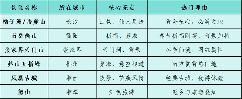 湖南春运热门景区预测一览表