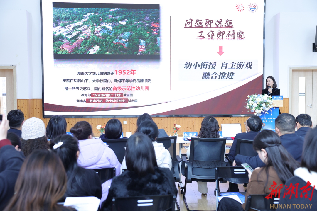 天心区教育局、望城区教育局、湘江新区教育局分别作区域典型经验分享。国防科大一号园区幼儿园、望城区爱立方幼儿园、雨花区教育局璟和城幼儿园、湖南大学幼儿园针对园本教研、智慧幼儿园、学前融合教育、自主游戏与幼小科学衔接等园所典型经验进行交流。