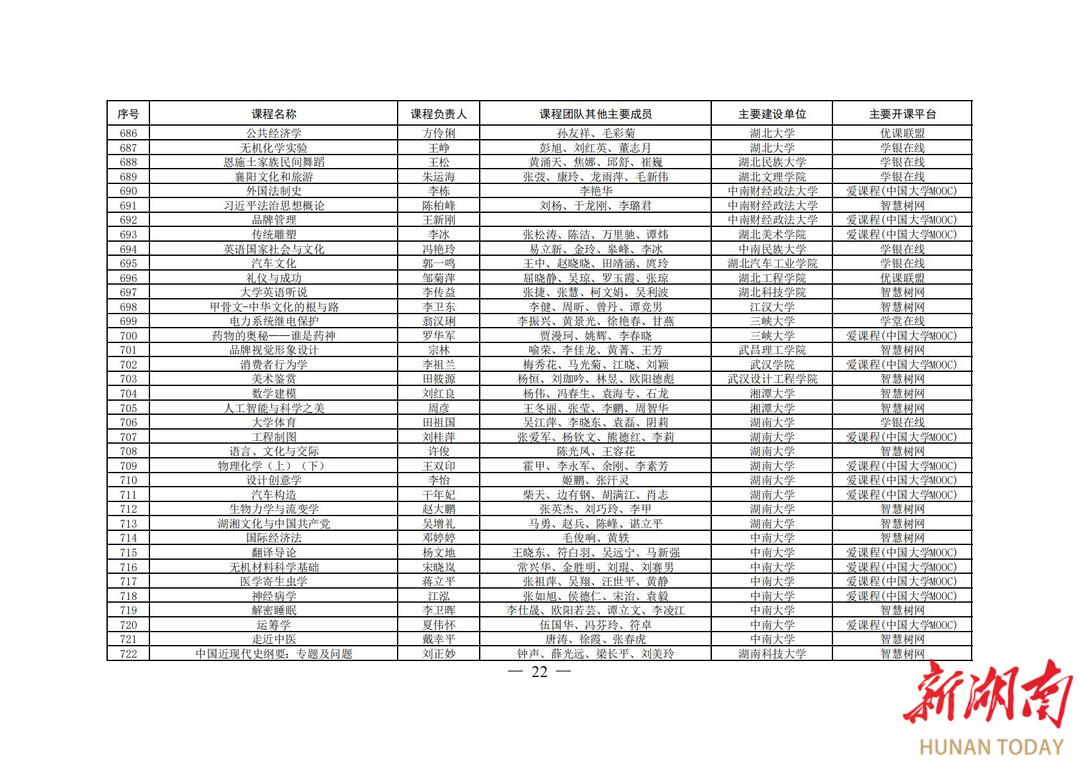 本次入选课程紧扣时代需求与学科前沿,涵盖了理工农医、人文社科、艺术体育等多个领域。既有《人工智能与科学之美》《粉末冶金原理》《神经病学》等聚焦科技创新与健康中国的专业核心课,也有《湖湘文化与中国共产党》《走近湖湘红色人物》等融汇思政教育与地方文化的特色课,还有《城市地铁浮置板轨道减振原理与设计》《碳中和背景下庭院绿色建筑智能控制仿真实验》等对接产业急需的实践类课程,充分体现了我省高校在服务国家战略、传承创新文化、培养复合型人才方面的积极探索。
