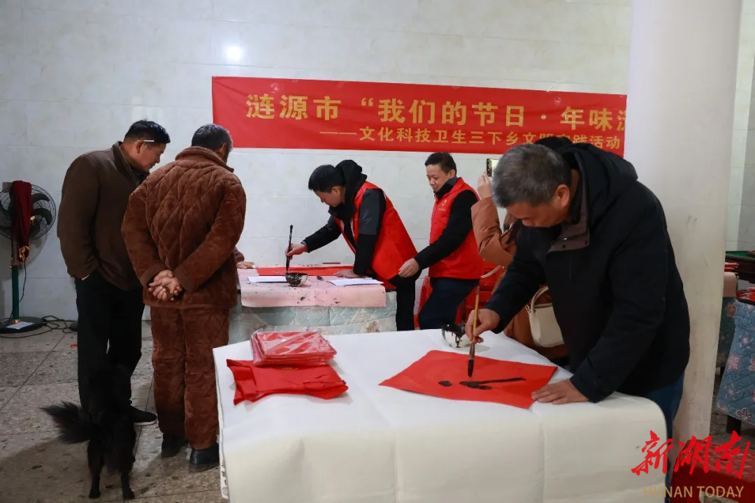 此次宣讲还与“我们的节日·年味涟源”——文化科技卫生“三下乡”文明实践系列活动相结合,书法家们现场挥毫,为村民书写春联,文艺志愿者为大家带去了精彩的演出,义剪志愿者为村民带来贴心服务,科技志愿者向村民普及科技知识,医卫志愿者为村民提供医疗服务。科技下乡与文化、卫生服务深度融合,为村民们送去了新春的祝福,丰富了基层群众的精神文化生活,提升了群众的幸福感、获得感和安全感。