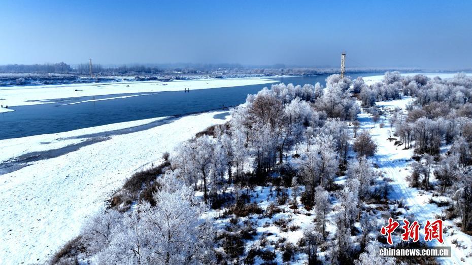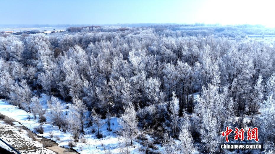 近日,新疆喀什地区莎车县叶尔羌河畔出现雾凇美景。连日来,随着气温较大幅度降低、昼夜温差变大,莎车县叶尔羌河两岸出现雾凇美景。放眼望去,千树万树“银花”绽放,漫步其间,仿佛踏入冰雪童话世界。韩亚伟 摄