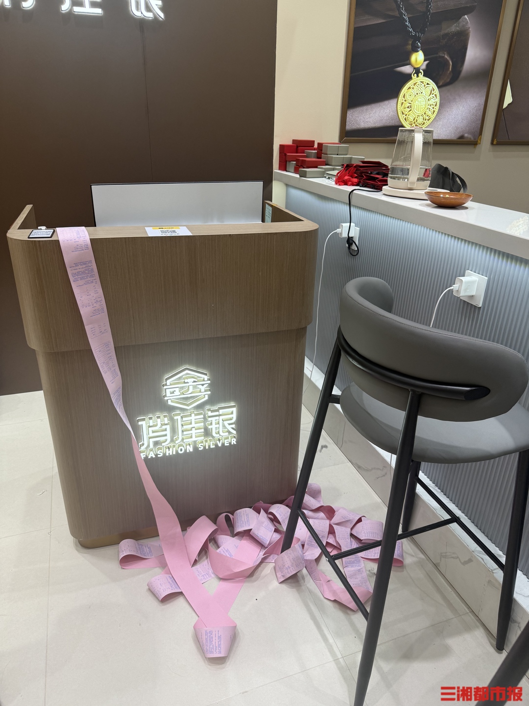 而俏佳银万家丽店的收银台处,小票则堆成了半尺高。该店工作人员透露,近期销量随着银价的大涨,持续上升,“购买银饰的刚需客户不受价格影响,该买还是买,都说看好后续行情。”