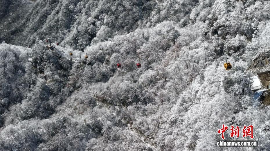 近日,位于川陕交界处的陕西省汉中市龙头山景区冬景迷人,连绵山峦被积雪点缀,蔚为壮观,吸引了不少游客前来登山赏雪。宋晓丽 摄