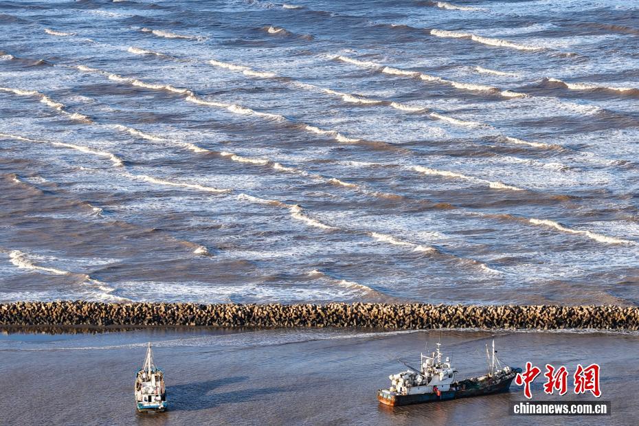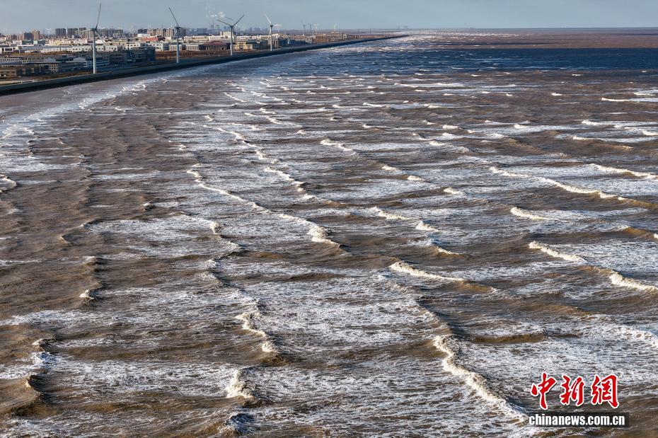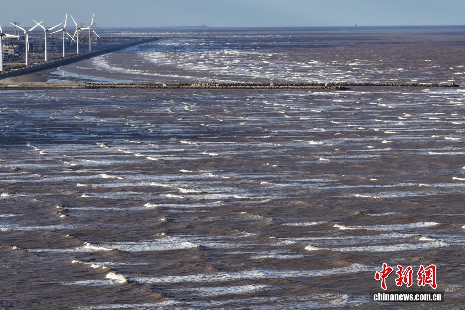 航拍黄海东海交汇 大潮奔涌蔚为壮观