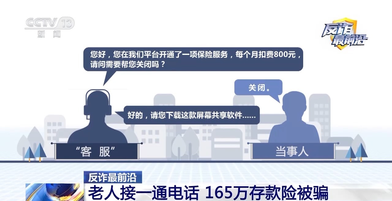 老人告诉民警,当天上午,他接到了一通电话,对方自称是某平台客服,说老人开通了一项保险服务,不关闭的话每个月都会自动扣费,还说可以远程帮他关闭服务,但是需要他下载一款屏幕共享软件。