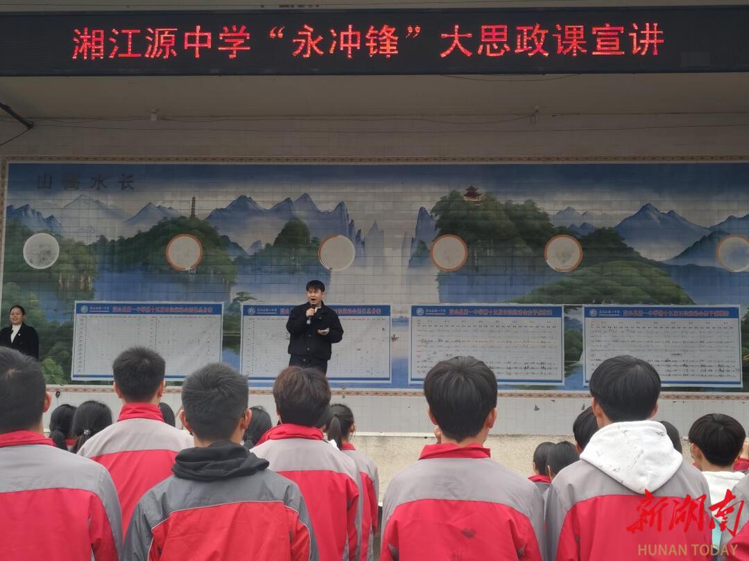 “点球大战4次扑点、绝境头球制胜——这些不仅是绿茵传奇,更是生动的成长课。”1月10日,永州队球员走进蓝山二中,与学生面对面分享“逆境中的坚持”。各校以“广播+国旗下的讲话+校园展板”构建三维宣讲体系,累计开展主题宣讲44场,制作海报、展板百余块,让“永冲锋”故事随处可见、精神可感可知。