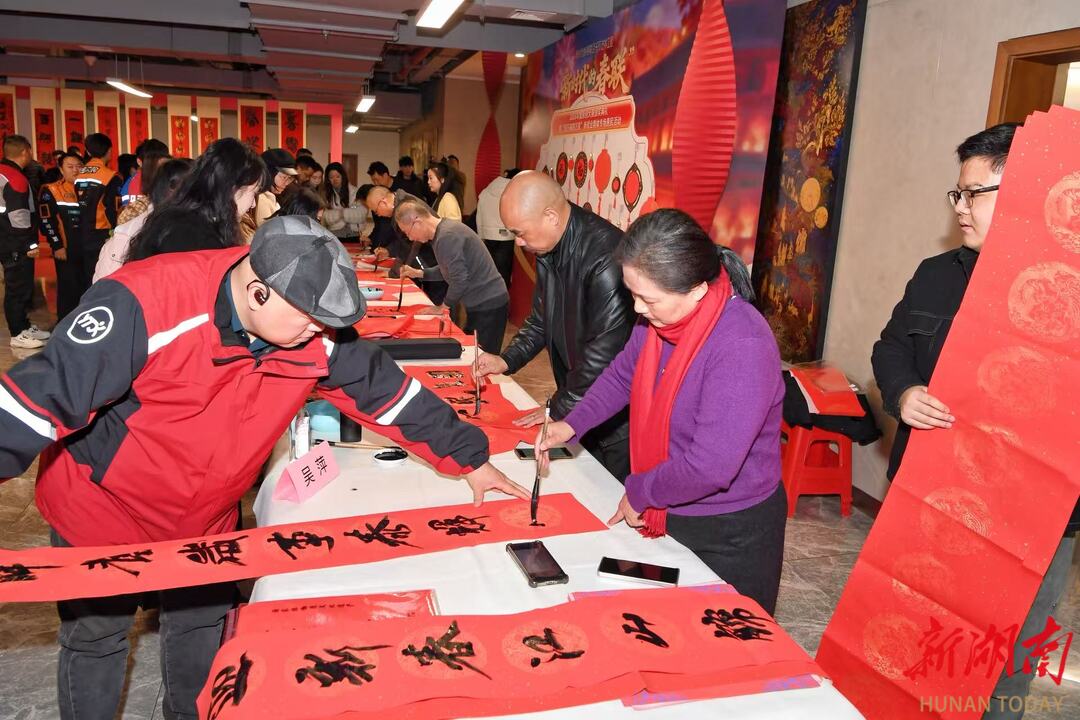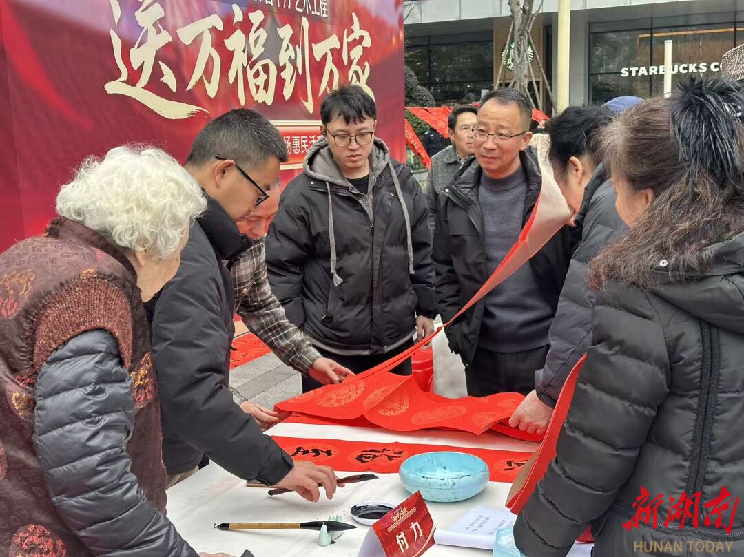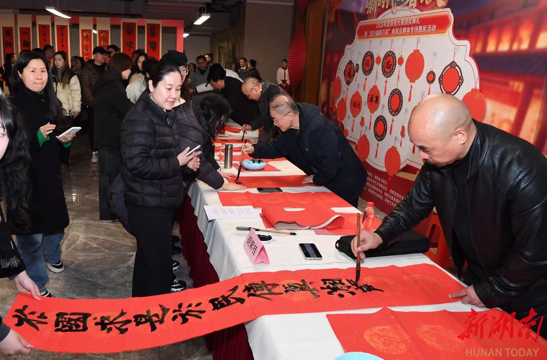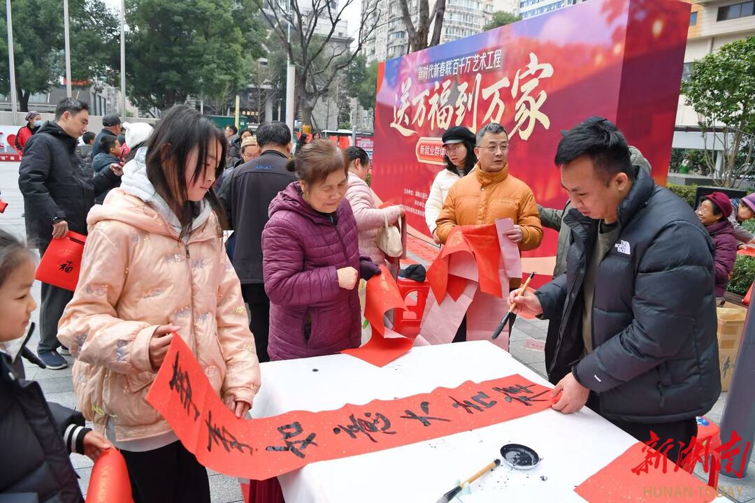 湖南省文联党组成员、副主席赵双午介绍,新时代新春联 “百千万” 艺术工程已走过三载春秋,成为元旦春节期间老百姓最喜欢的大型品牌文艺惠民活动之一。工程以“撰百联、书千联、送万福”为核心,组织数万名文艺家开展数千场惠民活动,送出百万副春联,让传统文化浸润千家万户。未来,省文联将持续深入农村、社区、企业、军营、医院等基层一线,聚焦新就业群体、困难群众、乡村振兴一线村民等群体,举办线上书法作品展,推动“我们的节日——春节”“送万福进万家”“强基工程”落地见效,让文艺惠民活动走深走实。
