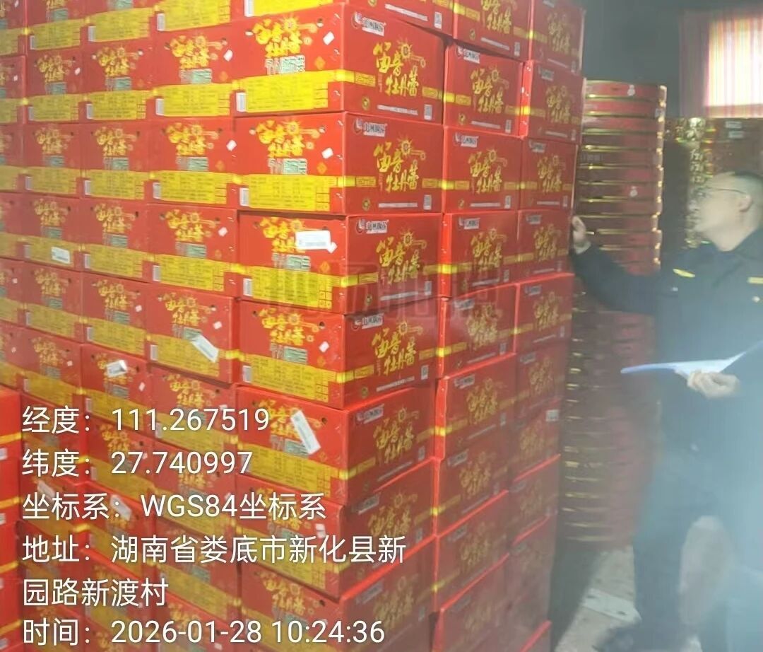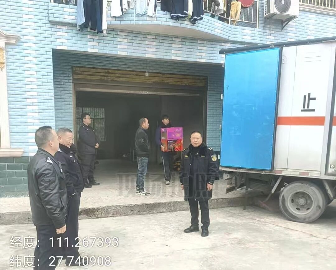 1月28日,新化县应急管理局联合县公安局及上梅街道应急站,在上梅街道新渡社区排查时,发现第十二村民小组伍某住宅一楼房间内非法储存1115 件烟花爆竹产品(烟花 745 件、鞭炮 370 件)。