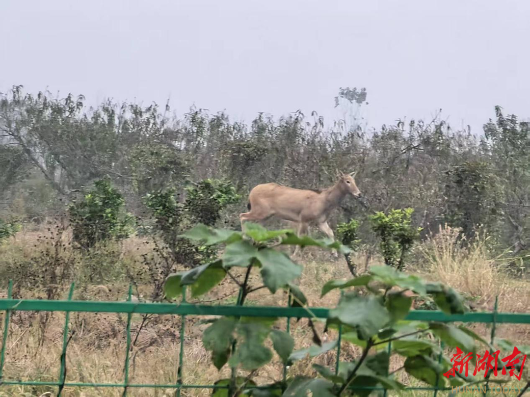 它们为何离开传统栖息地,选择在此落脚?君山区自然资源局工作人员给出了答案:这与洞庭湖季节性涨水密切相关。“每年汛期,湖区水位上升,部分麋鹿会外迁寻找安全的食物来源和栖息地。这对母子很可能就是那时‘搬迁’过来的。”它们相中的这片区域,丘陵起伏、果园连片、桑林茂密,既提供了丰富的“自助餐”,又保留了足够的隐蔽空间,堪称一个理想的“福地洞天”。