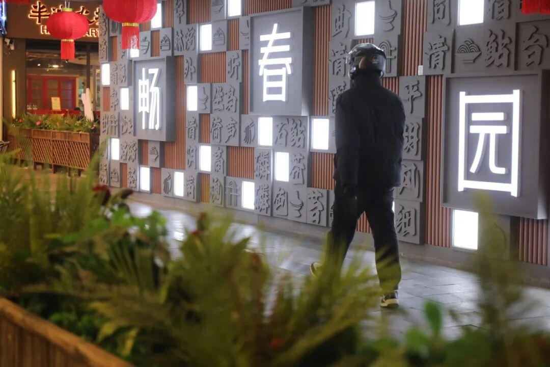 “本次工程是以‘承古韵,焕新潮’为核心主线,重点围绕主题氛围、文化体验及商业融合三大维度进行提升。”畅春园·畅饷里负责人薛海生介绍,“在主题氛围上,我们对标志性‘灯塔’进行了光效改造,并在外街楼体打造了‘春夏秋冬’四季主题投影秀,内容随季节更迭。二是将墙面、栏杆升级为展现‘三山五园’历史文化的特色景观,并增设了地面互动投影游戏,以此深化文化体验。在商业融合方面,则是通过在主入口设置地标投影优化导引、外街规划四处品牌展示平台的方式,用夜色勾勒商业肌理。”这种“一街一景、一店一光”的夜间景观效果,在保留“烟火气”的同时,更为街区注入了现代美学的基因。