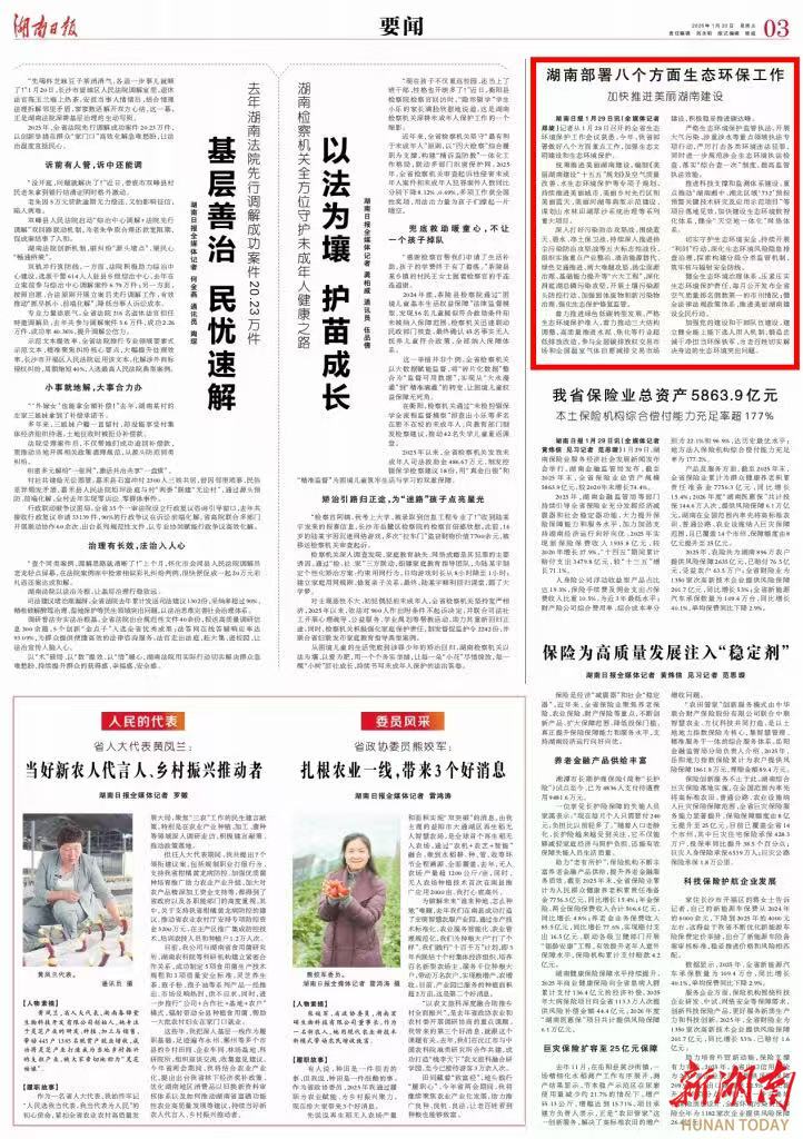 统筹推进美丽湖南建设。编制《美丽湖南建设“十五五”规划》及空气质量改善、水生态环境保护等专项子规划,持续推进美丽城市、美丽乡村先行区和美丽蓝天、美丽河湖等典型示范建设,谋划山水林田湖草沙系统治理等系列重大项目。