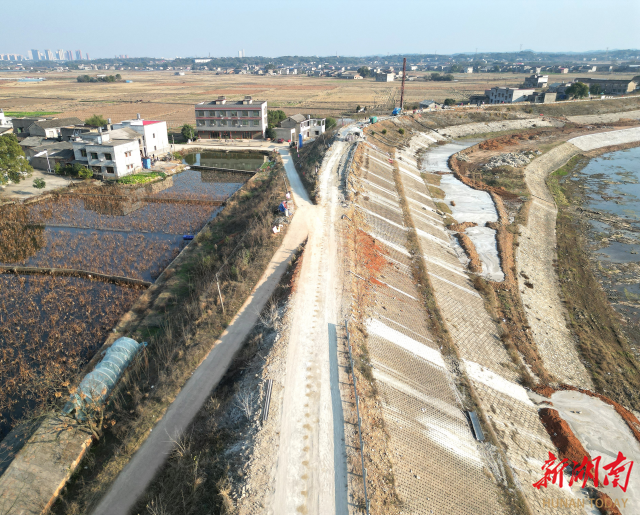 1月27日,湘潭县易俗河镇段堤防加固工程现场,挖掘机挥舞铁臂,工程车穿梭不息,施工人员忙着绑扎钢筋、浇筑混凝土。冷空气被热火朝天的景象驱散,一曲争分夺秒的“冬修进行曲”酣畅奏响。
