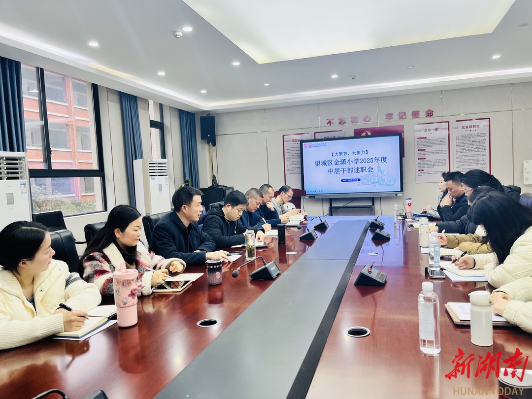 科教新报·新湖南客户端讯(通讯员 周敏)为全面总结回顾过去一年的工作,检验中层干部履职尽责情况,强化责任担当,凝聚发展共识,1月29日,长沙市望城区金潇小学召开“同心共绘新愿景 聚力奏响最强音”大聚智、大聚力2025年度中层干部述职会。学校领导班子、全体中层干部齐聚一堂,共同检阅年度工作答卷,谋划未来发展新篇。