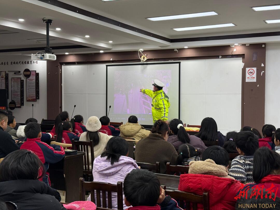 岳麓交警六中队民警李旭带来的交通安全知识讲座。“同学们,你们知道乘坐电动车为什么要戴头盔吗?”李旭通过生动的案例和互动问答,向孩子们讲解了“一盔一带”的重要性,并鼓励他们成为家庭中的“小小安全监督员”,回家后提醒父母遵守交通规则,平安出行。