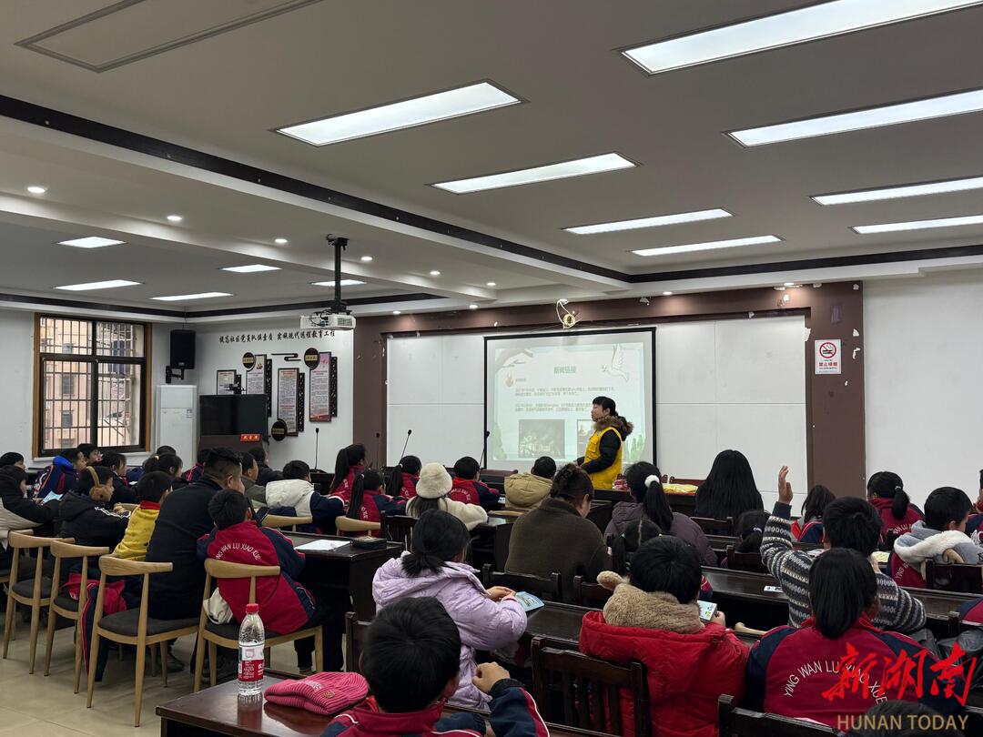 随后,溁湾镇社区工作人员接过话筒,将话题转向春节期间的禁燃禁放工作。“放鞭炮虽然热闹,但会产生大量有害气体和噪音,还可能引发火灾。”工作人员通过图片展示和数据对比,向孩子们讲解了烟花爆竹对空气质量、环境卫生和公共安全的影响,并详细介绍了长沙市关于禁燃禁放的相关规定。“我们可以用更环保、更安全的方式庆祝新年!”社区工作人员鼓励道。