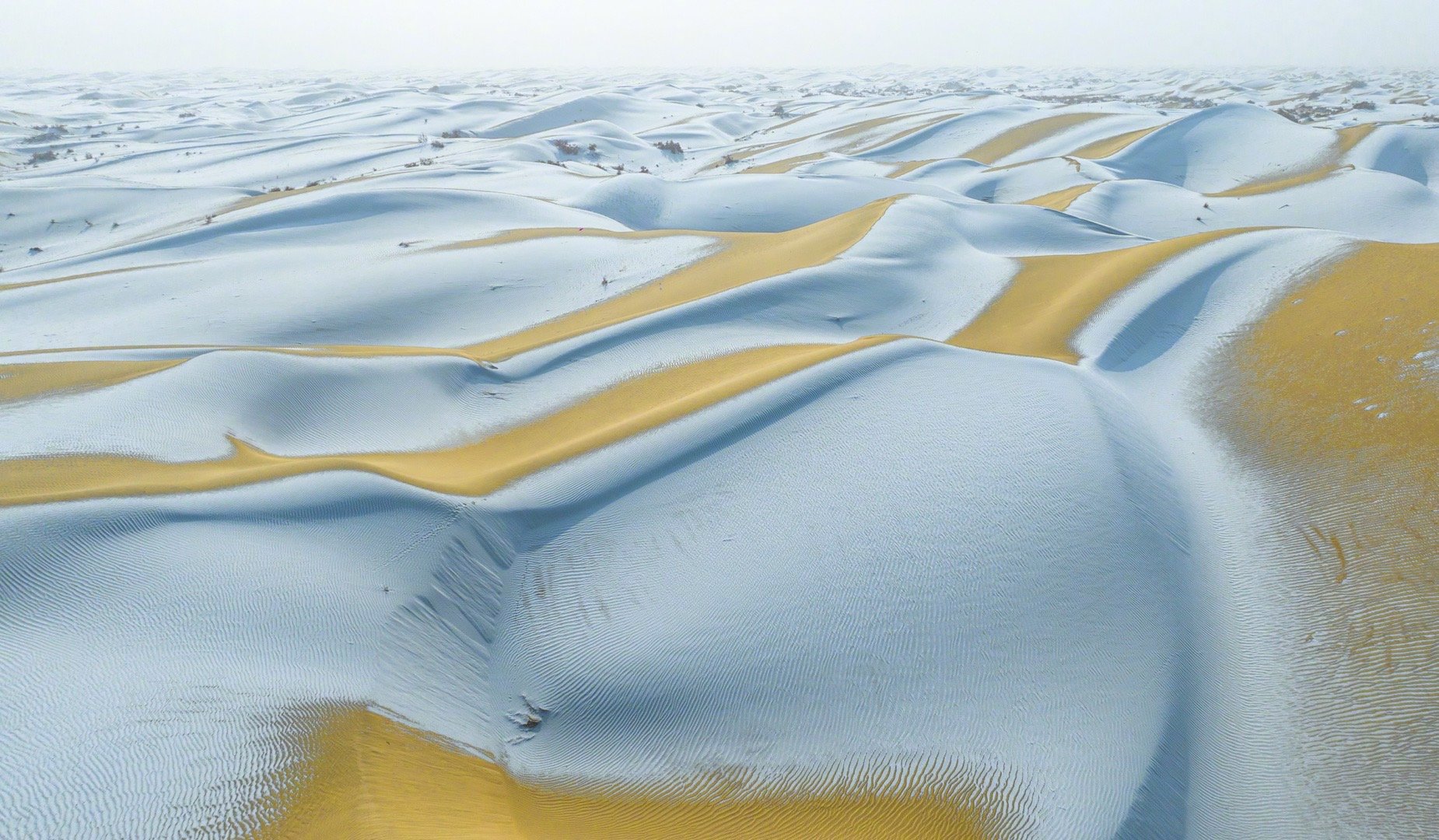 1月28日夜间至29日清晨,中国最大的流动沙漠塔克拉玛干出现降雪。金黄与银白碰撞交融,沙漠雪景别有一番意境。