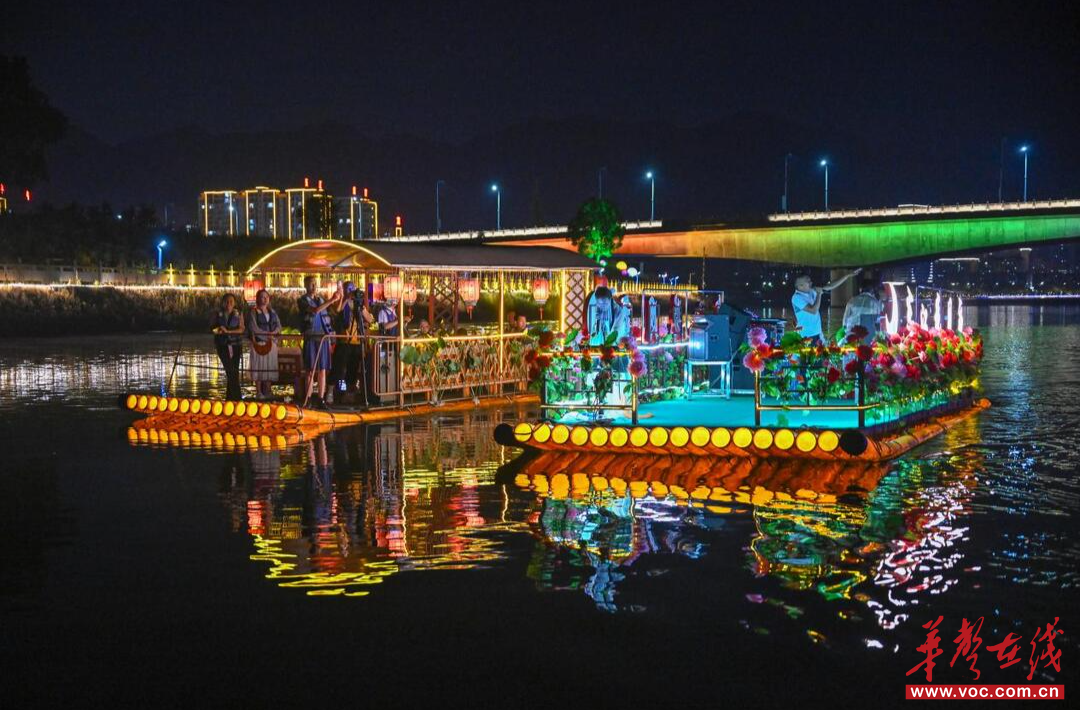 (宁远九嶷山景区南风集灯火璀璨,吸引众多游客前来游玩。刘贵雄 陈祉凝 摄)
