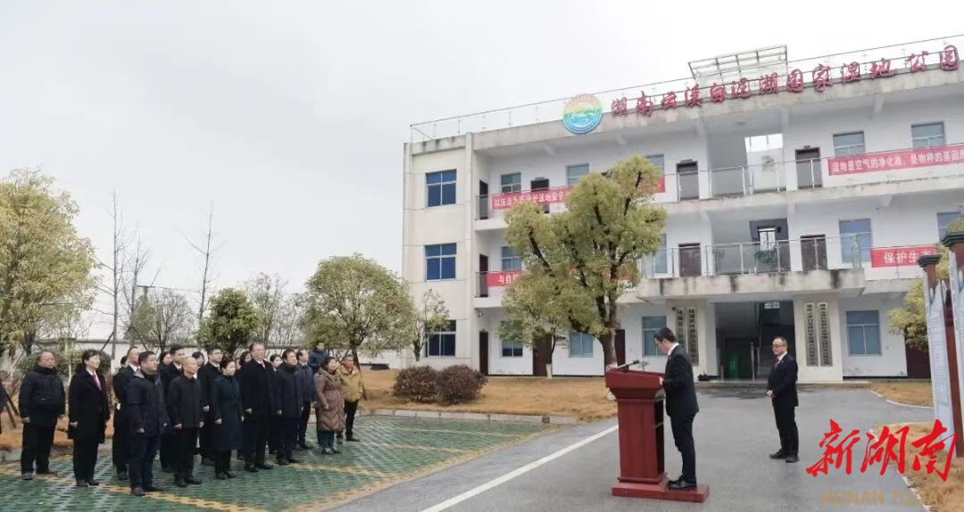 在第30个世界湿地日即将到来之际,1月30日,岳阳市中级人民法院联合云溪区人民法院在白泥湖国家湿地公园举行生态环境司法保护基地揭牌仪式。活动同步设立环境资源巡回法庭、发布《野生鸟类司法保护令》,标志着岳阳法院将司法服务深度延伸至湿地保护一线,以法治力量守护“地球之肾”的生态安全边界。