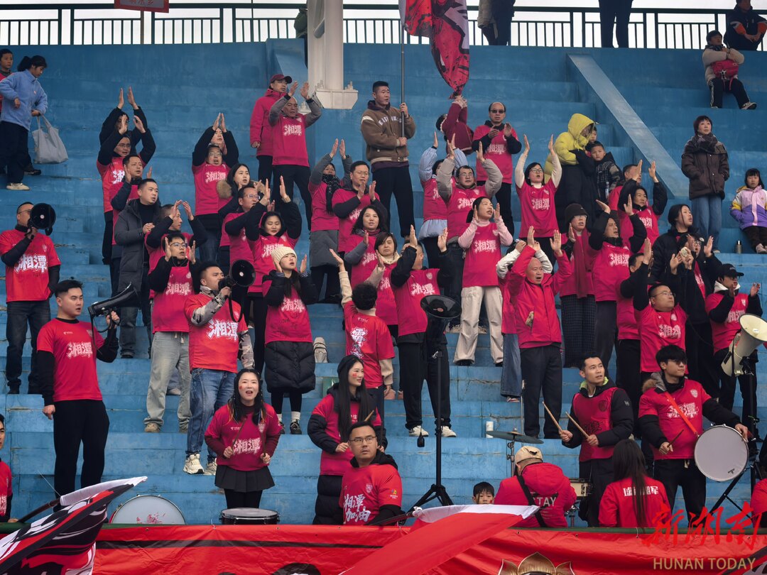 湖南日报·新湖南客户端1月31日讯(记者 蒋睿)今天,2025年湘潭市“贺岁杯”足球邀请赛第三轮焦点战如期上演,湖南科技大学队与湘潭县队在寒风中展开激烈角逐。尽管当日寒风凛冽,但现场球迷的热情丝毫未减,呐喊助威声贯穿全场,为这场冬日赛事注入了滚烫活力。