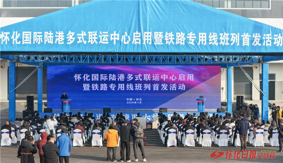 怀化国际陆港多式联运中心启用暨铁路专用线班列首发活动举行。怀化日报全媒体记者 潘雨 摄