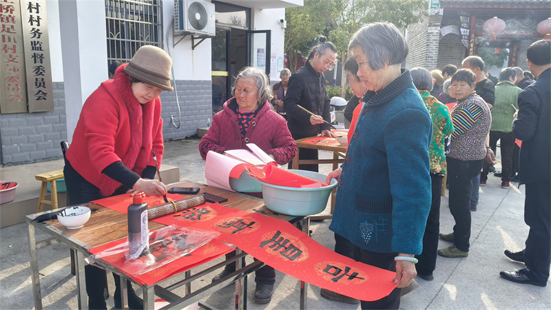 村民们围在一旁,挑选着贴合心意的春联,拿到写好的春联后脸上满是喜悦,纷纷称赞这样的活动既贴心又有年味。大家接过的不仅是一副副春联,更是一份份浓浓的文化暖意和新春祝福,在笔墨书香中感受中华传统文化的魅力。