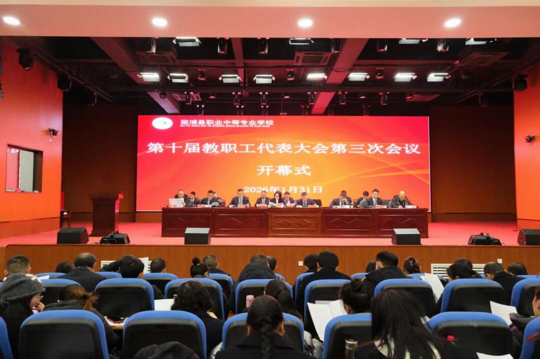1月31日,溆浦县职业中等专业学校第十届教职工代表大会第三次会议在学校演播厅召开。学校党委书记万霞,党委副书记、校长贺弘卫及校级领导班子出席会议。大会特邀代表与教职工代表齐聚一堂,共商学校发展大计,共谋职业教育提质增效良策。会议由学校纪委书记周德兵主持。
