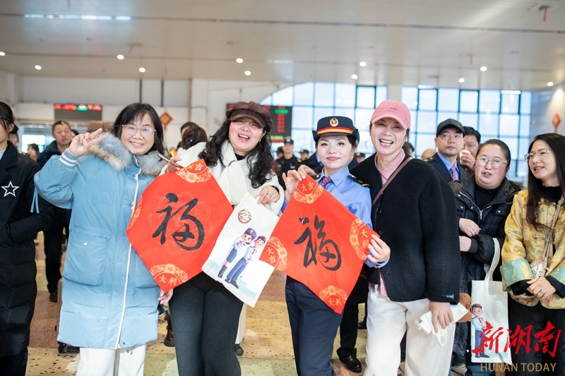 2月2日,怀化南站联合多部门开展“万福迎春”公益活动,为旅客送上新春祝福。当天,2026年春运启动,至3月13日结束,为期40天。 柴均林 周雨晴 摄影报道(湖南图片库)