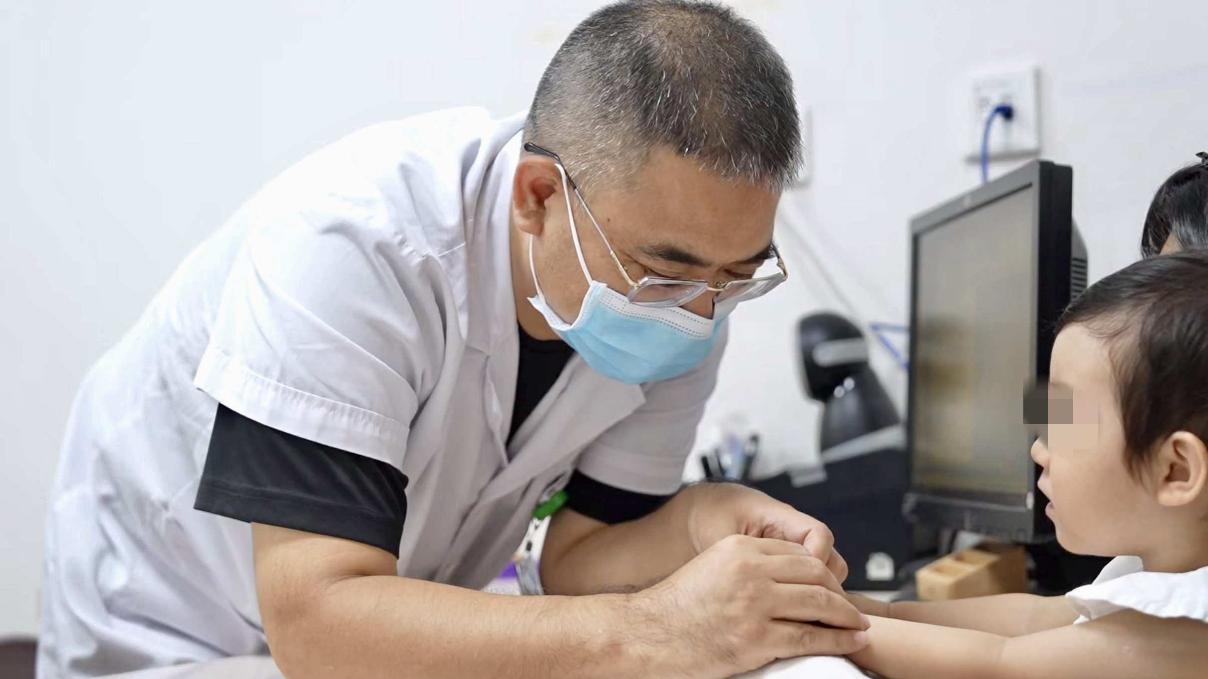 为小患者看诊的周新灿