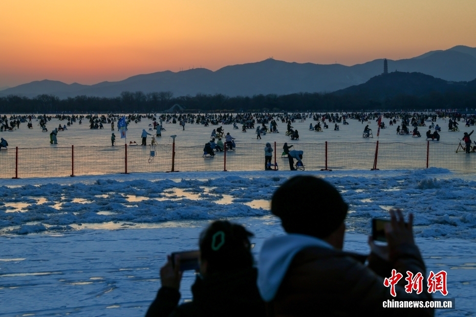 北京天气晴好 颐和园昆明湖冰场游人如织