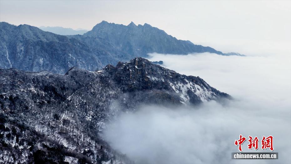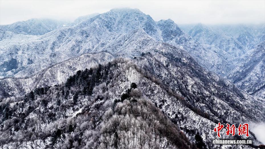 近日,陕西西安。秦岭北麓翠华山迎来绝美冬日盛景,雾凇凝霜缀满琼枝,云海翻涌漫过山峦,皑皑白雪尽覆秦岭群峰,勾勒出一幅灵动的冬日山水画卷,尽显秦岭冬日的雄浑与婉约。图为秦岭翠华山上的雾凇景观。张霄龙 摄