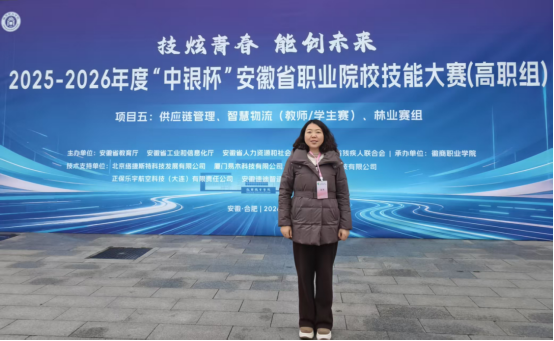 近日,2025-2026年度“中银杯”安徽省职业院校技能大赛(高职组)智慧物流(学生赛/教师赛)在徽商职业学院进行。本次大赛由安徽省教育厅、省工业和信息化厅、省人力资源和社会保障厅、省残疾人联合会联合主办。安徽省内共57支队伍228人参赛,其中教师组14支参赛队伍、学生组43支参赛队伍。长沙民政职院商学院教师周玉梅受邀担任本次大赛裁判,并圆满完成执裁任务。