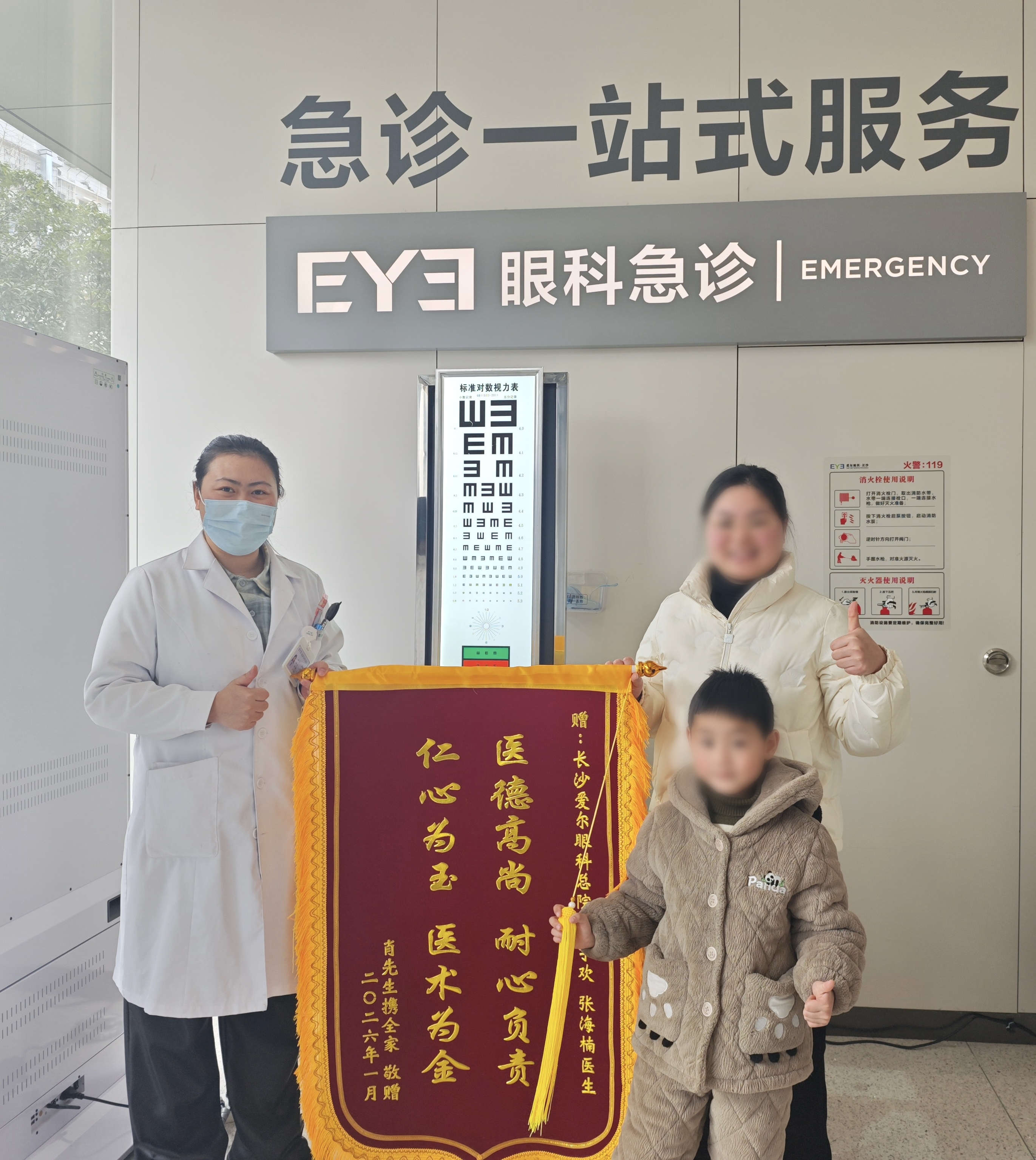 经治疗,嘉嘉恢复平稳,视力得到有效保护。医疗团队不仅注重手术成功,更重视术后康复指导与家属沟通,通过细致的护理和定期复查安排,全力确保康复效果。“现在孩子说看东西越来越清楚了,悬着的心放下来了!”家长也从最初的焦虑和担忧转为安心与感激,特意送来锦旗,表达对医护团队专业能力与人文关怀的高度肯定。