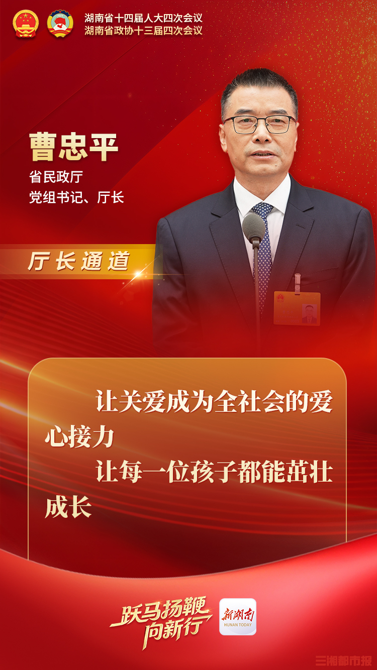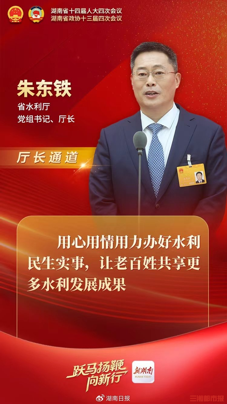 2月3日,湖南省十四届人大四次会议第一场“厅长通道”开启,省民政厅党组书记、厅长曹忠平,省自然资源厅党组书记、厅长李全胜,省水利厅党组书记、厅长朱东铁,省商务厅党组书记、厅长沈裕谋纷纷走上通道,围绕加强困境儿童关爱帮扶、持续消除“坡边隐患”、湖南现代化水网建设、消费提质和开放升级等热点议题,阐述湖南“担当”,回应民生关切。
