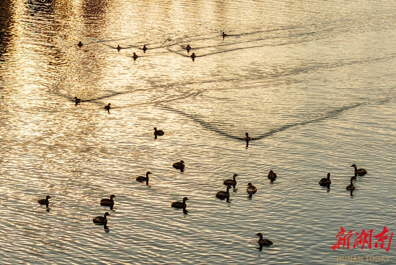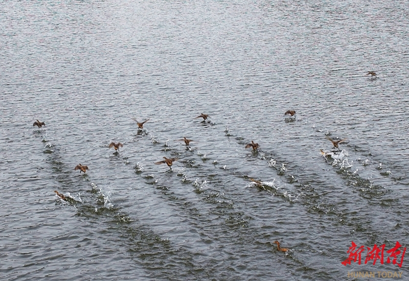 2月2日,第30个世界湿地日,湖南嘉禾钟水河国家湿地公园,众多水鸭在河面嬉戏、觅食。近年来,嘉禾县加大生态环境保护力度,开展爱鸟护鸟宣传,水生态环境持续改善,吸引众多鸟类来此“安家”。黄春涛 摄(湖南图片库)