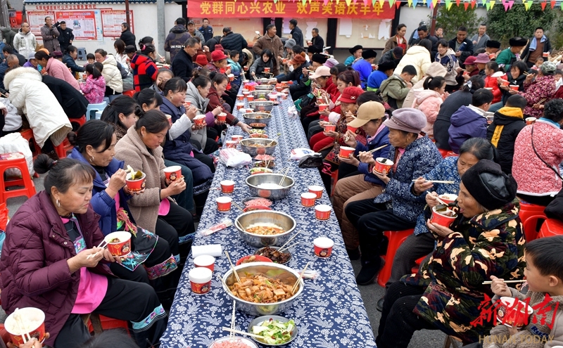 2月3日,吉首市马劲坳镇团结村,村民在吃团圆宴。当天,吉首市农业农村局在团结村开展“情暖乡村,喜迎新春”活动,村民欢聚一堂,通过打糍粑、打苗鼓、写春联、吃团圆宴等丰富多彩的民俗活动,共迎新春佳节。姚方 刘丹 摄影报道(湖南图片库)