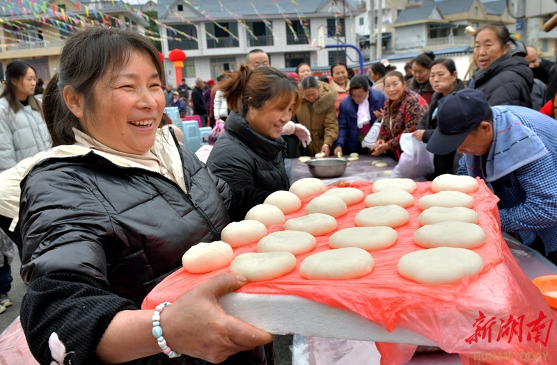 2月3日,吉首市马劲坳镇团结村,村民在制作糍粑。当天,吉首市农业农村局在团结村开展“情暖乡村,喜迎新春”活动,村民欢聚一堂,通过打糍粑、打苗鼓、写春联、吃团圆宴等丰富多彩的民俗活动,共迎新春佳节。姚方 刘丹 摄影报道(湖南图片库)
