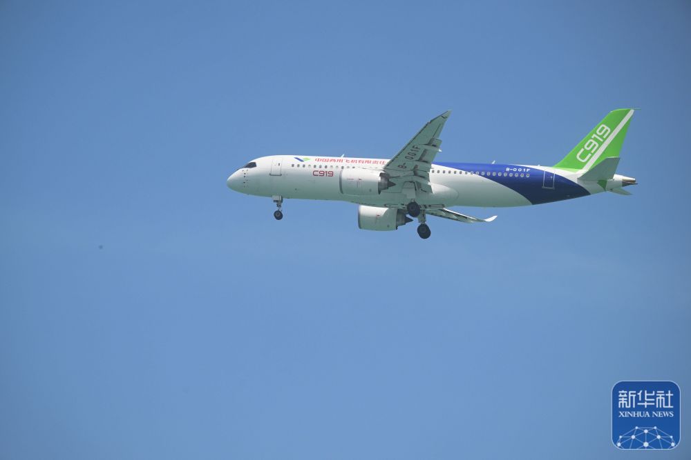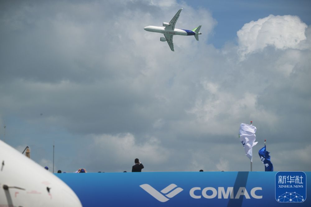 2月3日,一架中国商飞C919飞机在第十届新加坡航展首日进行飞行表演。