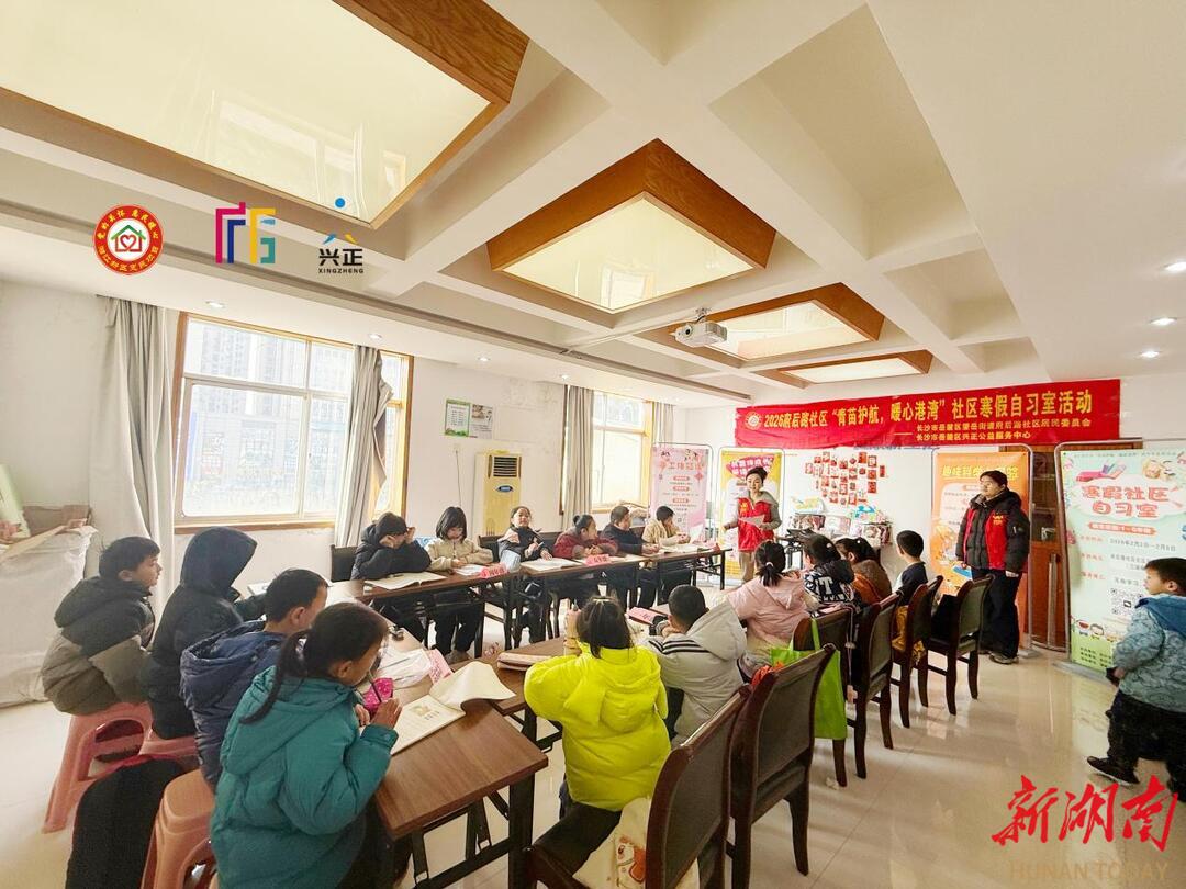 新湖南客户端2月3日讯(通讯员 肖佳)为持续深化“青年志愿服务进小区”工作内涵,切实缓解辖区双职工家庭假期子女“看护难”问题,2月2日上午,湘江新区望岳街道府后路社区携手岳麓区兴正公益服务中心,正式启动2026年“青苗护航·暖心港湾”寒假自习室活动。本次爱心托管服务以社区自习室为阵地,整合多方资源,致力于为青少年打造一个安全、充实、愉快的假期学习成长空间。