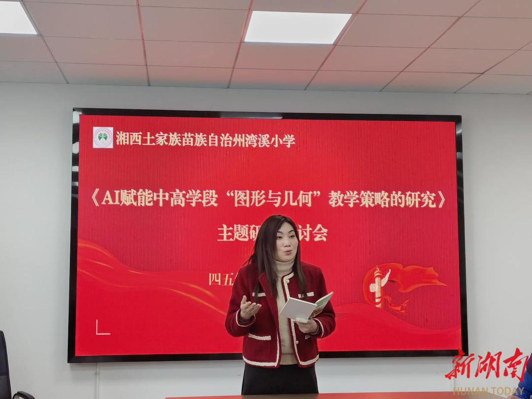 新湖南客户端2月4日讯(通讯员 李燕 陈婉)“空间想象力弱、图形转不起来怎么办?”2月1日,湘西土家族苗族自治州湾溪小学四、五年级教研组召开主题式校本研修专题会议,运用“三层六步”模式中的“U型法”诊断工具,将学生“图形与几何”学习痛点层层下沉、精准锚定,并首次引入AI技术作为破解策略,跑出校本研修“加速度”。