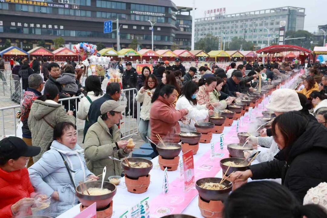 启动仪式在上午十点正式开始。现场一百余口炖锅同时开火,选用桃源本地生态土猪、土鸡、牛肉等优质食材,配以传承工艺的鲜湿米粉,在文武火的交替慢炖下,汤色渐浓,香气四溢,勾勒出记忆中温暖质朴的乡土年味。不少早早到来的市民围在炖锅旁,一边感受热气蒸腾的壮观场面,一边等待品尝这碗“免费的乡情”。